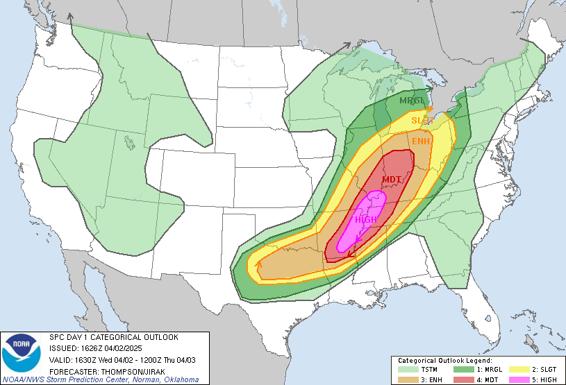 As I noted in our look ahead earlier today, we have a high risk for severe weather in the mid-Mississippi Valley this afternoon and evening. We can go through full severe seasons without a high risk, so this is notable.
