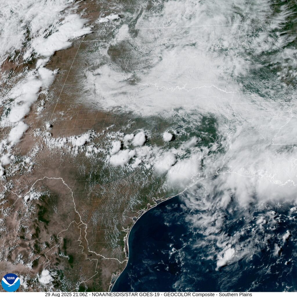 It looks like a pretty good holiday weekend is coming up for southwest Oklahoma. Spots of rain, but temperatures are manageable. Not so bad on satellite this afternoon.