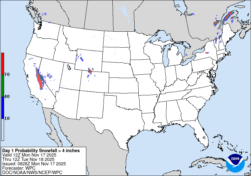 1:48PM: We discussed in our recent road trip forecast the threat for snow in the Sierras, and potential treachery around Truckee for unsuspecting drivers. Well, by the look of the current forecast from the WPC, there should no longer be unsuspecting drivers.
