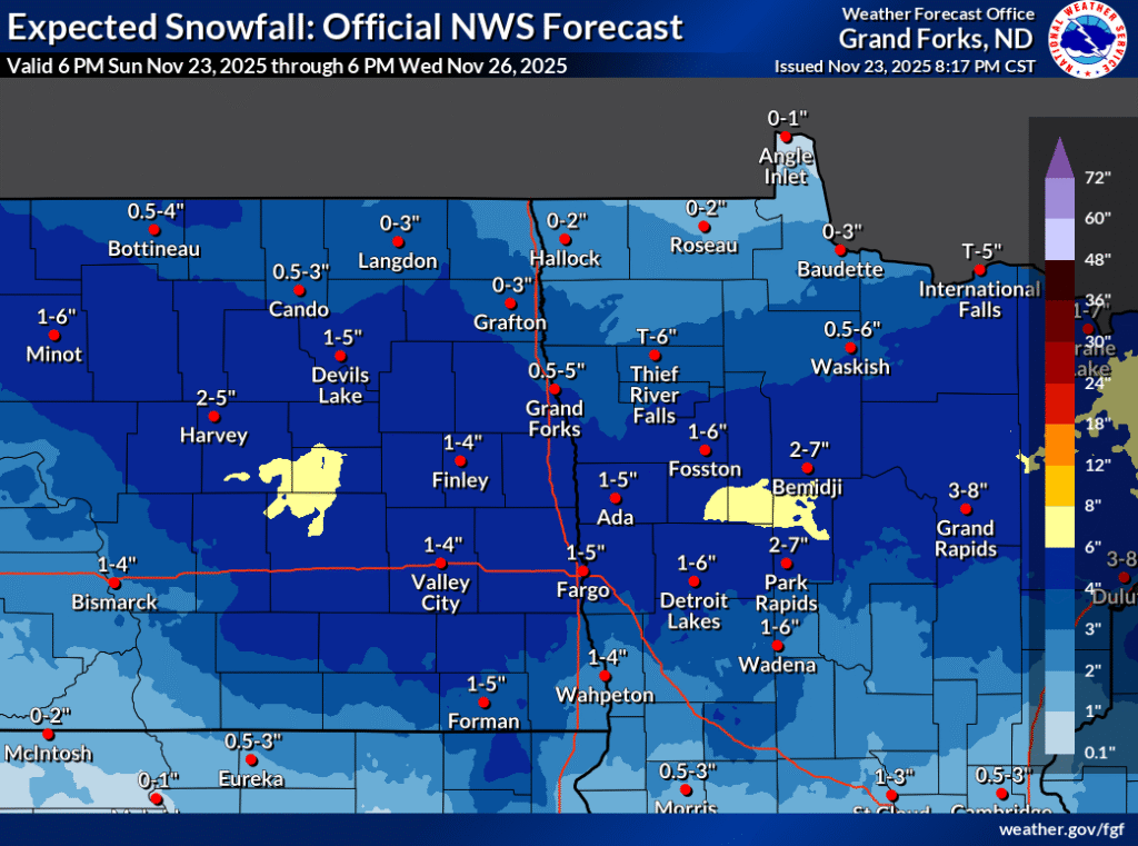 This isn’t a ton of snow, and the roads that it impacts aren’t well travelled. There won’t be volume issues in Bismarck or Duluth or Rhinelander, some airports that will see some of this snow. Lake effect snow will become a problem on Thanksgiving, so Cleveland and Buffalo are going to be tricky for day-of traveling, and perhaps returning home on Friday as well.