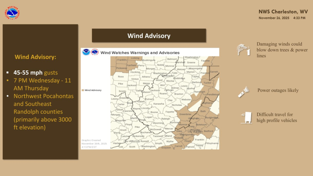 9:48PM It has been a very windy at Victoria-Weather headquarters today behind the system bringing snow to the Great Lakes and rain in New England, but the post-frontal howling wind is nothing compared to what they are looking for in the Upper Ohio Valley.