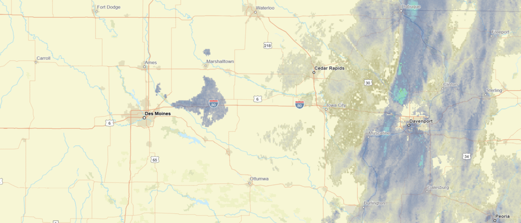 Here’s the radar imagery for Iowa, with our warm front already through town. Well, through the Hawkeye State, actually.